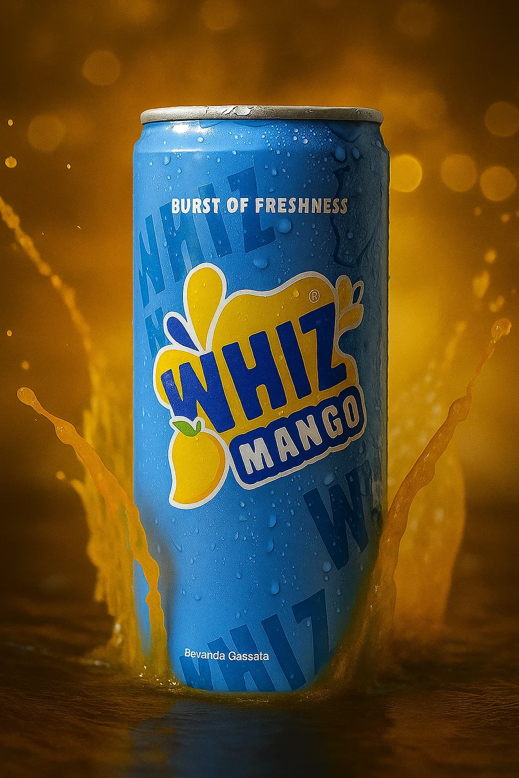 Whiz Mango is a carbonated beverage containing water, sugar, carbon dioxide, mango juice concentrate, citric acid, preservatives, and colorants. Each 330ml can provides 45 kcal, 11g of carbohydrates, and is free from fats and protein. A light and energizing drink, and 100% recyclable.