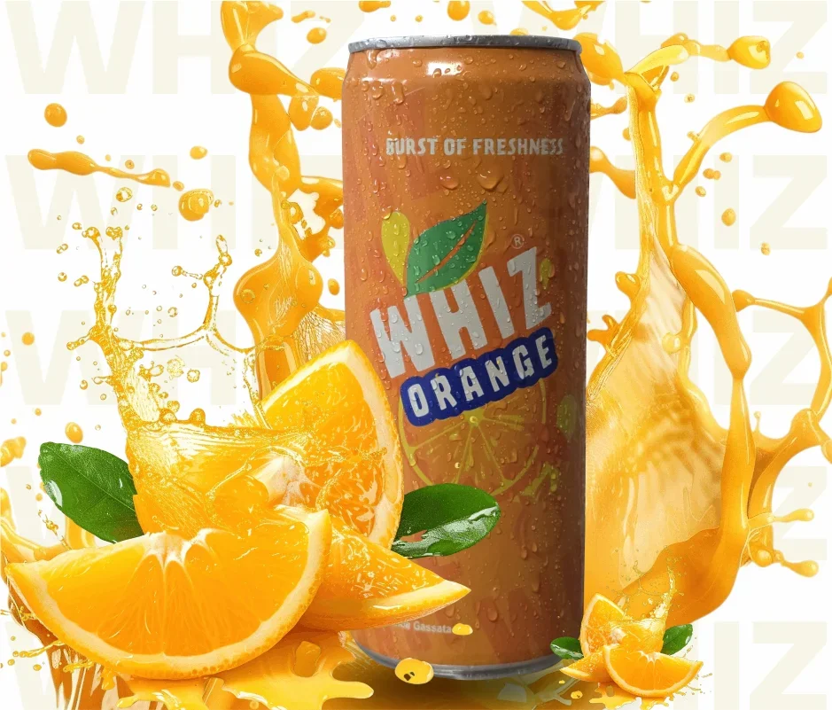 “Whiz Orange is a refreshing carbonated drink with a burst of orange flavor. Made with orange juice concentrate and packed in a 330ml can, it’s the perfect thirst quencher. Low in calories, recyclable packaging, and full of zest!”